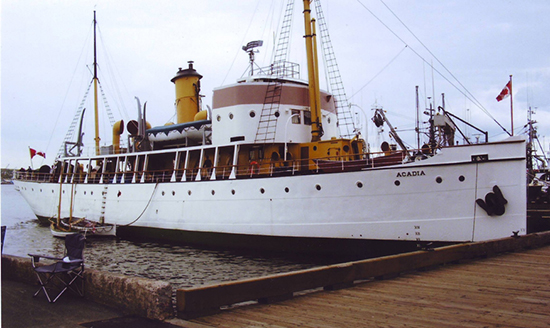 The CSS Acadia is a steel, single-screw vessel, 51.8m long, 10.2m beam and 6.4m draught, built at a cost of $330,000. She has a displacement of 1,700 tons. Her original speed was 12.5 kt. Designed and built for work in northern waters, the Acadia has 7/8" iron plating and heavier than normal framing. She was further strengthened against ice in 1914 Her total compliment was 60, of which 10 were hydrographic staff. She was decommissioned in 1969 and is currently part of the Maritime Museum of the Atlantic in Halifax, NS. The Acadia had an illustrious career and if there was ever a jewel in the CHS fleet, it has to be her. Her area of operation was all of the Atlantic Coast and Hudson Bay. She was a familiar site in many parts of Newfoundland and was an integral part of many adventures in that area. Her crew were like a family and operated like a well oiled machine - just like the triple expansion steam engine that propelled her for all those years. There is a web site (developed by the Maritime Museum of the Atlantic) devoted to Acadia and can be found at museum.gov.ns.ca/mma/AtoZ/acadia.html